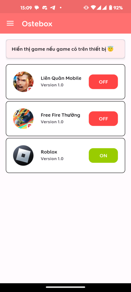 Bật chế độ chơi game dành riêng cho roblox mobile, giảm lag tựa game này chỉ với 1 click đơn giản bằng ứng dụng ostebox. Cải thiện hiệu suất tựa game với các dòng lệnh tối ưu hoá game.