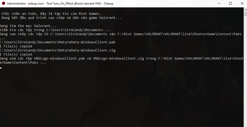 Và chạy lại tool bật hiệu ứng lần nữa để chạy.