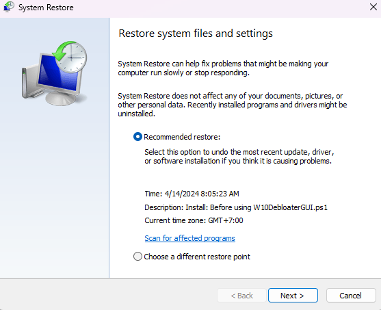 -> Khôi phục theo danh sách debloat, bạn muốn khôi phục vì lỡ tay debloat thì sử dụng tính năng này ^^