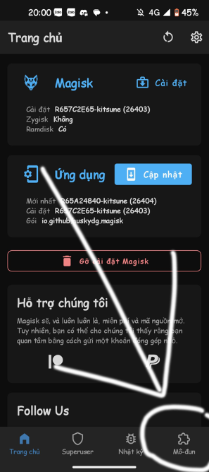 Nếu module (mô-đun) không sử dụng được thì do bạn chưa có cài đặt magisk(root) hoàn toàn đâu nhé