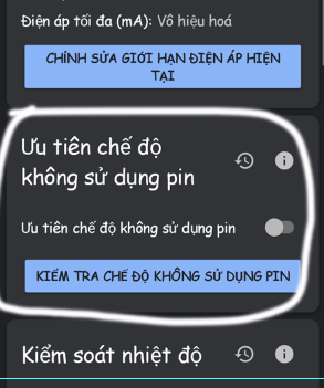 Tiếp đến là phần kiểm soát năng lượng sạc hay còn được gọi là giới hạn điện áp sạc.