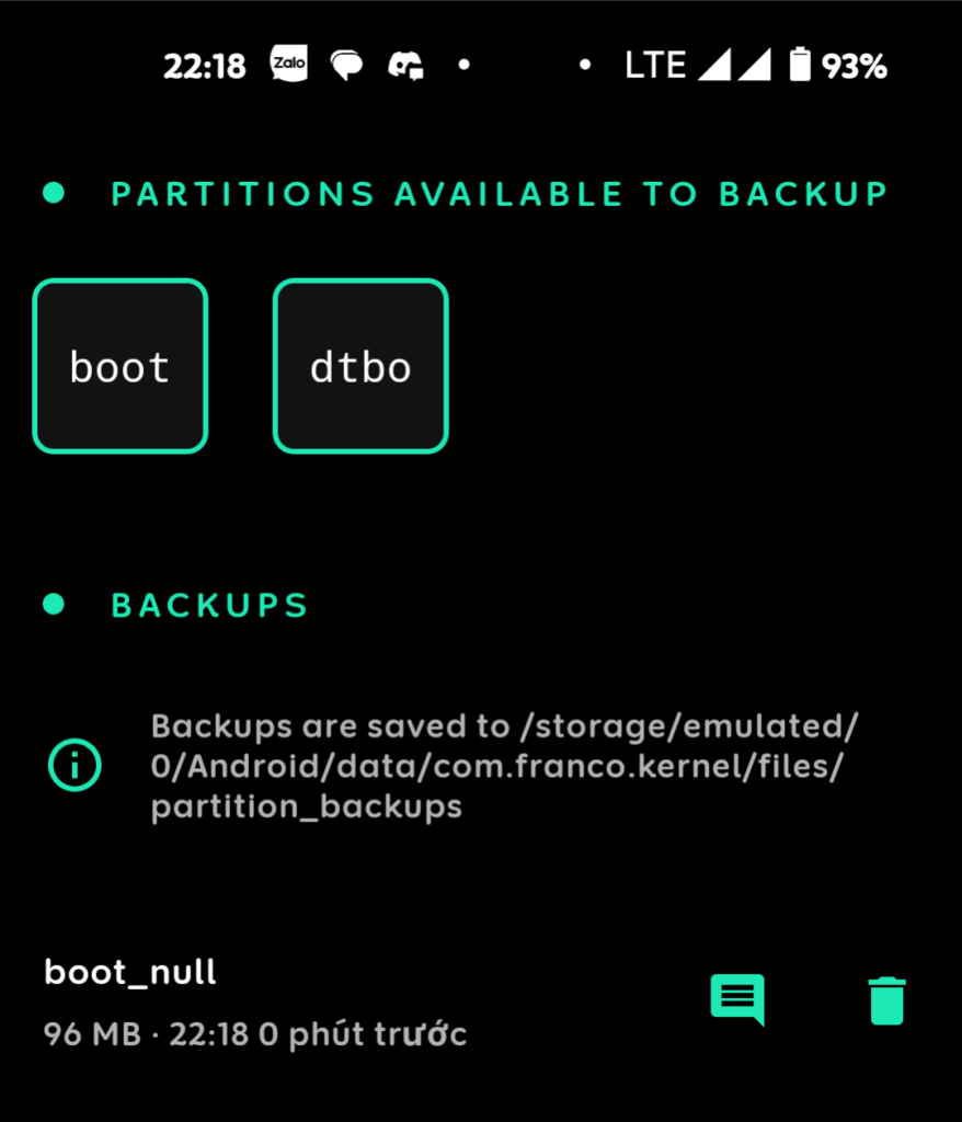 Sao lưu (backup) lại dữ liệu phân vùng boot/dtbo đề phòng trường hợp bạn chỉnh sâu tại đâu đó trong app mà cần khôi phục (restore) lại thì nên sao lưu dữ liệu để đảm bảo an toàn.