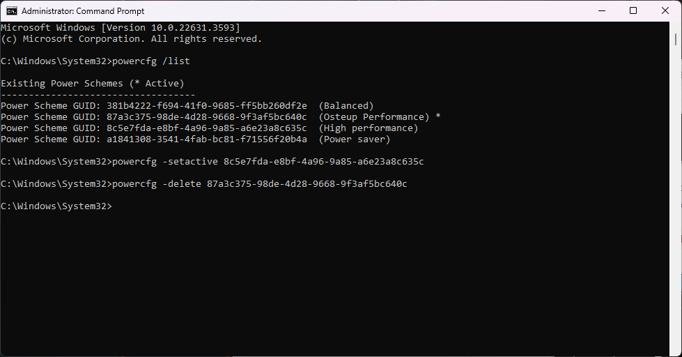 Copied!powercfg /list