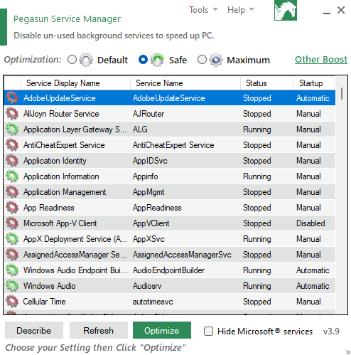 Optimize Services: Tối ưu services trên máy tính, hệ thống các dịch vụ không cần thiết sẽ được tắt.