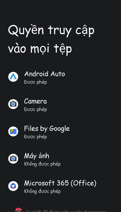 “Khi app yêu cầu cấp quyền thì nó tự động mở lên cửa sổ này cho bạn cấp quyền”