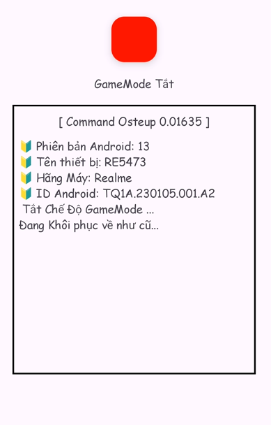 Khi mới mở app nó sẽ là nút màu đỏ và gamemode tắt.