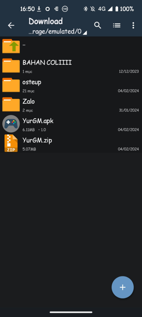 Sau khi tải File về thì bạn sử dụng các app như là Zarchiver , File , File Manager , … Để giải nén file ra thành YurGM.apk nhé.